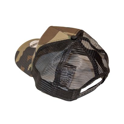 The Ducati Warhorse Camo A-Frame Trucker 9FORTY Snapback features an embroidered Ducati Warhorse logo at the front panels and trucker mesh fabrication at the rear.