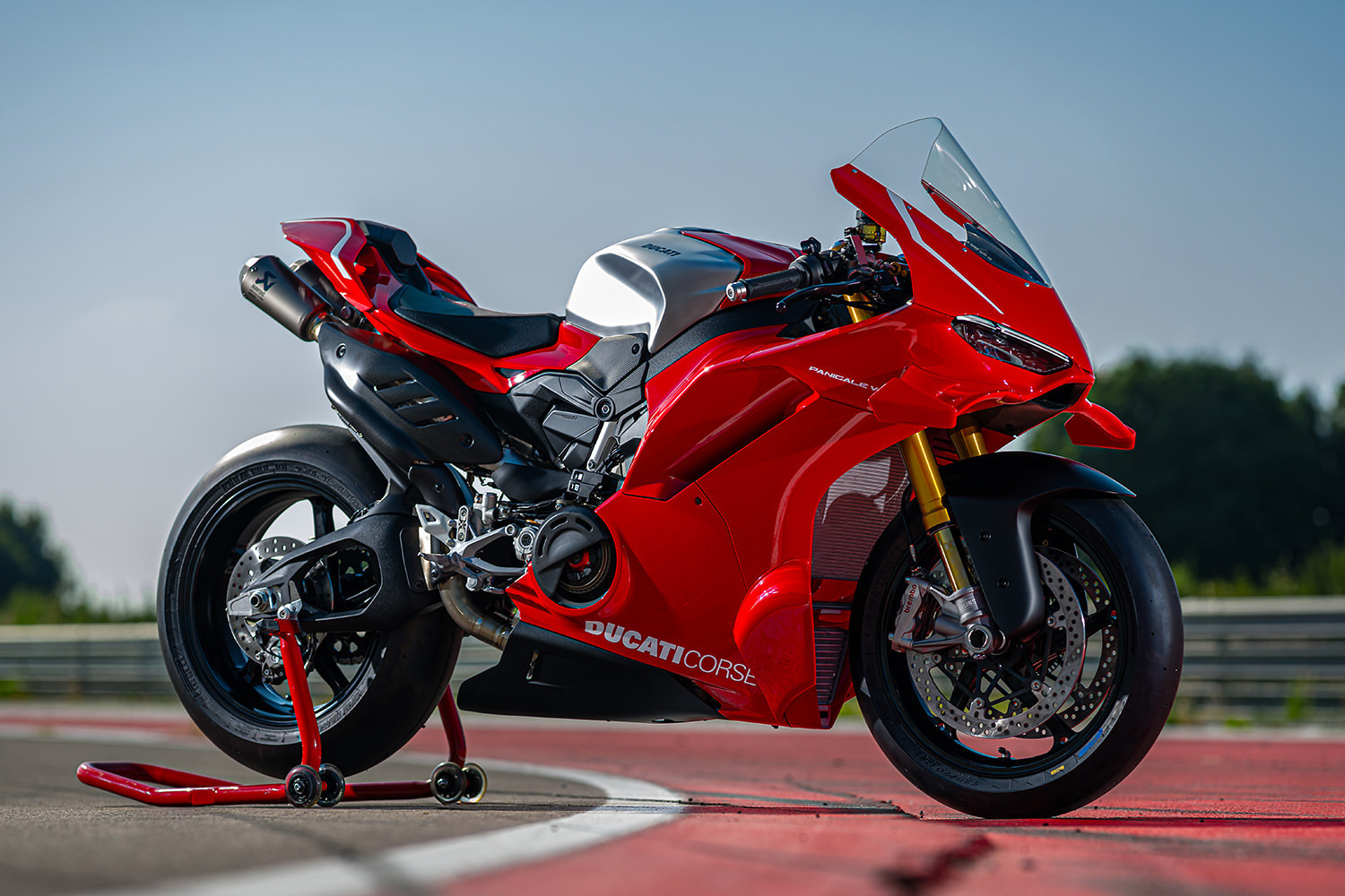 The latest evolution of a legendary saga that epitomizes Ducati's sports attitude. Developed to respect the WorldSBK championship regulation, the new Panigale V4 R embodies the success achieved by Ducati in MotoGP and Superbike. Powered by the 998 cc Desmosedici Stradale, it is the first bike homologated for road use to feature Corner Sidepods and the Ducati Racing Gearbox with Ducati Neutral Lock (DNL).