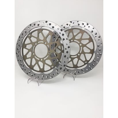 - WEIGHT: the particular drilling increases the removed material with the same diameter of the hole and the consequent reduction of the gyroscopic effect (-250g disc for the SBK version)