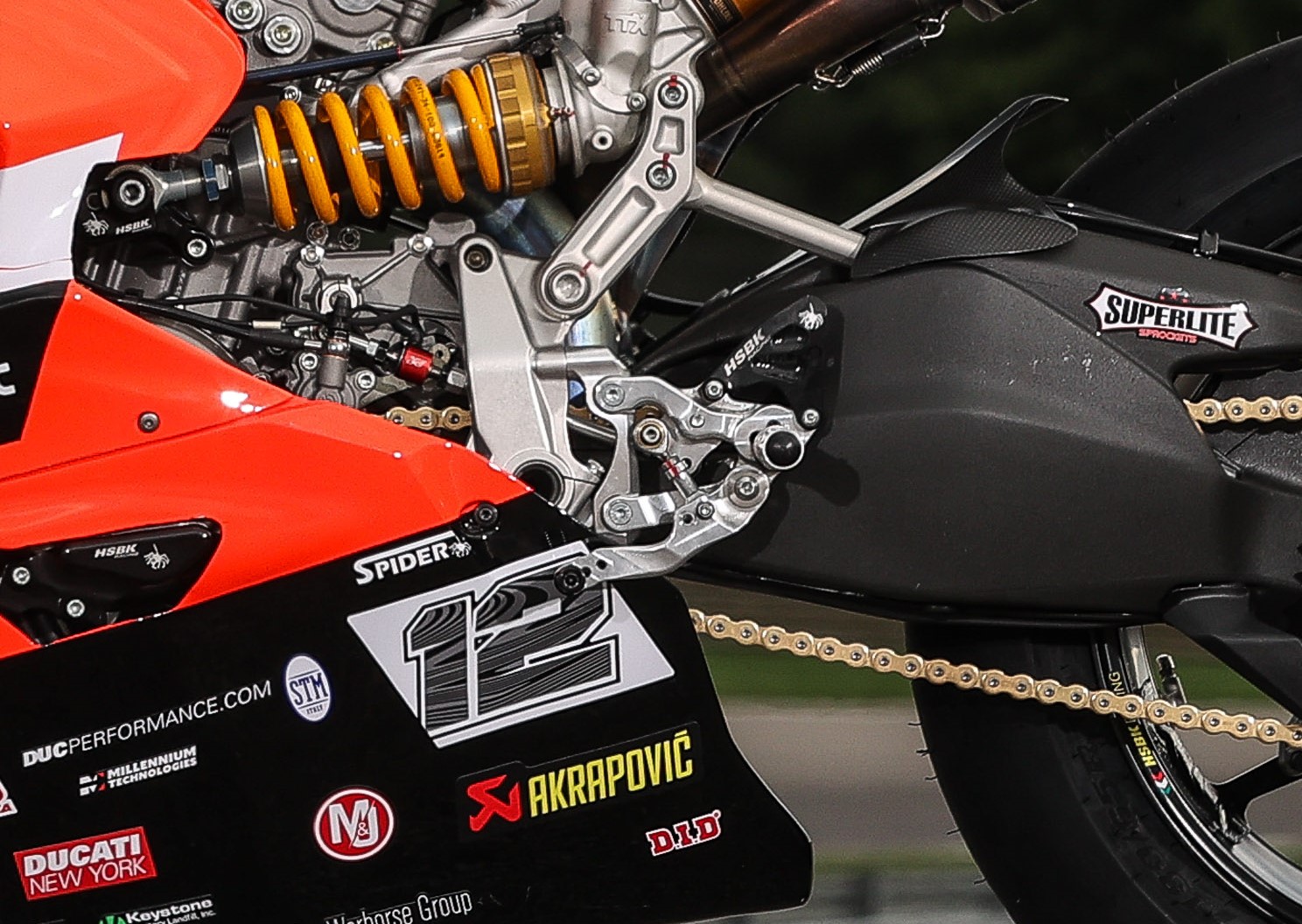 Special rearsets designed for the introduction of the Ducati into the WSS championship.