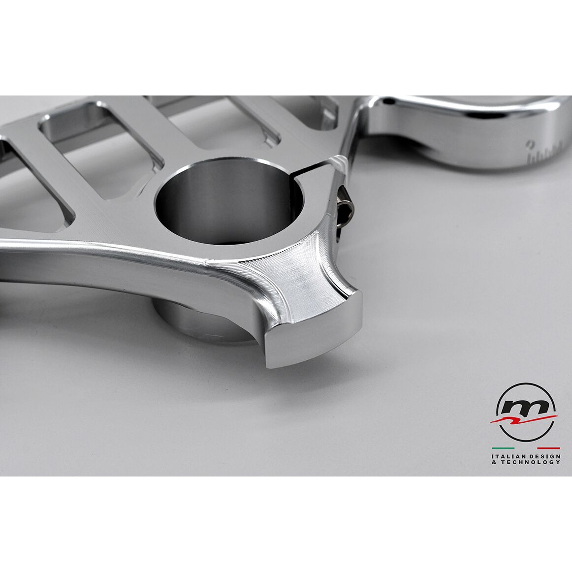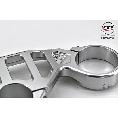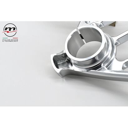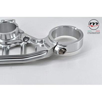 Designed to be combined with the stock lower plate, it significantly reduces chattering by increasing the feeling on the front end in the last phase of the “brake”, when you start to release the brake while entering the curve. As for the WSBK “Gull wings” version, the use of Titanium for the screws has been confirmed.