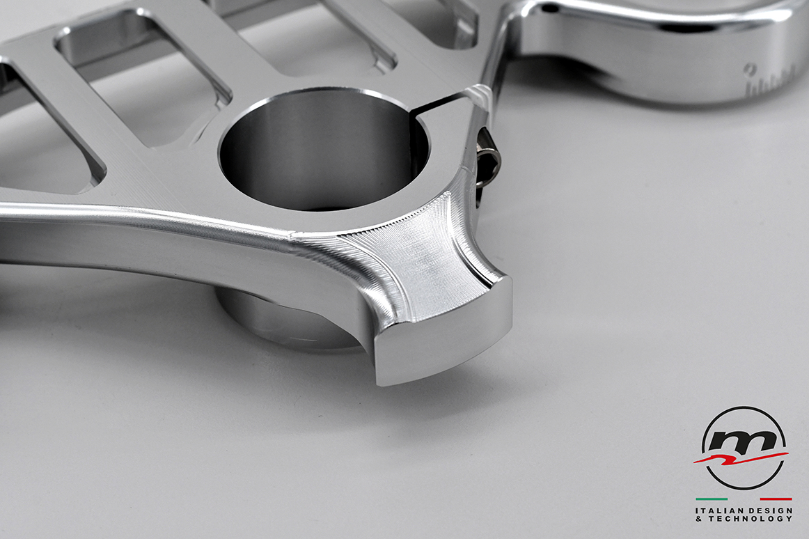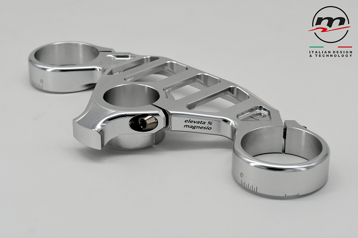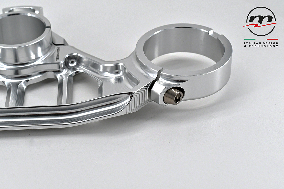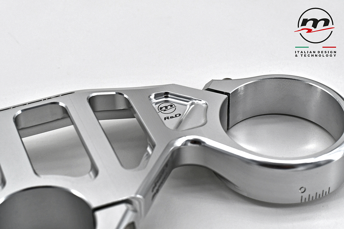 Designed to be combined with the stock lower plate, it significantly reduces chattering by increasing the feeling on the front end in the last phase of the “brake”, when you start to release the brake while entering the curve. As for the WSBK “Gull wings” version, the use of Titanium for the screws has been confirmed.
