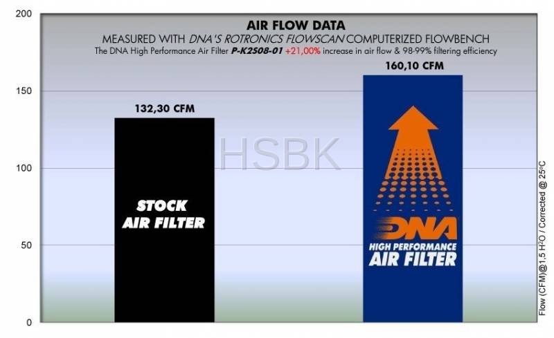 - The flow of this DNA Fcd filter is high, +21.00% more than the Kawasaki stock foam filter!