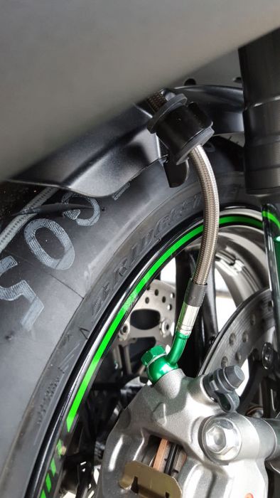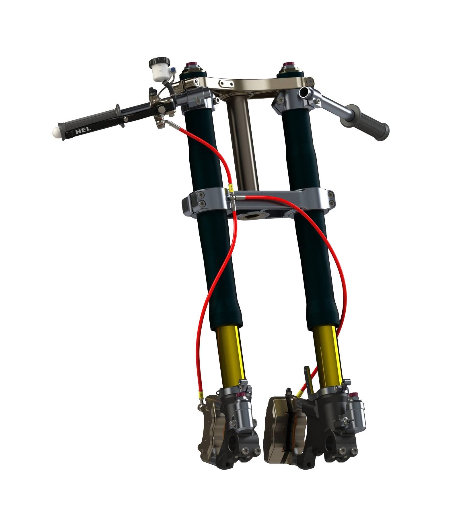 - This is a SBK spec line that splits at the lower triple clamps.