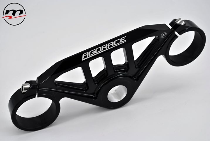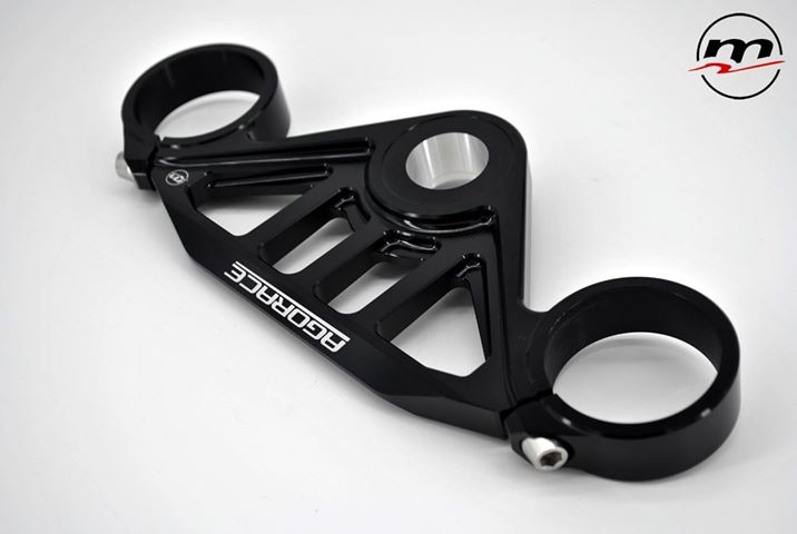 Keeping unchanged the standard spacing between the forks and the offset of the steering tube, this fork bridge boasts a noticeable reduction in weight from 526 g (18.55 oz) to 446 g (15.73 oz).